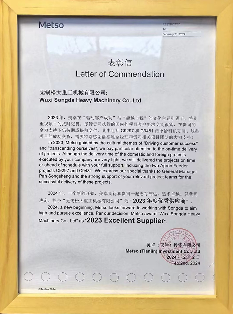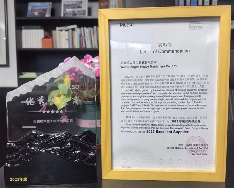 收到新年最好的禮物??,評為美卓礦機(jī)2023年度優(yōu)秀供應(yīng)商,這是客戶對松大的認(rèn)可及信任,在新的一年里更需要努力加油??,不辜負(fù)這份榮譽(yù),其他客戶也是如此,客戶的認(rèn)可是我們******的激勵(lì)及動(dòng)力,新的一年里帶領(lǐng)松大全體同仁更上一層樓!??!