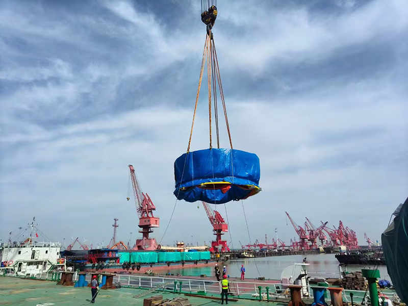 CMEC承接荷蘭TMS公司設(shè)計(jì)松大生產(chǎn)的風(fēng)電發(fā)電樁柱海上運(yùn)輸工具樁塞今天順利裝船發(fā)運(yùn),前往荷蘭??????????